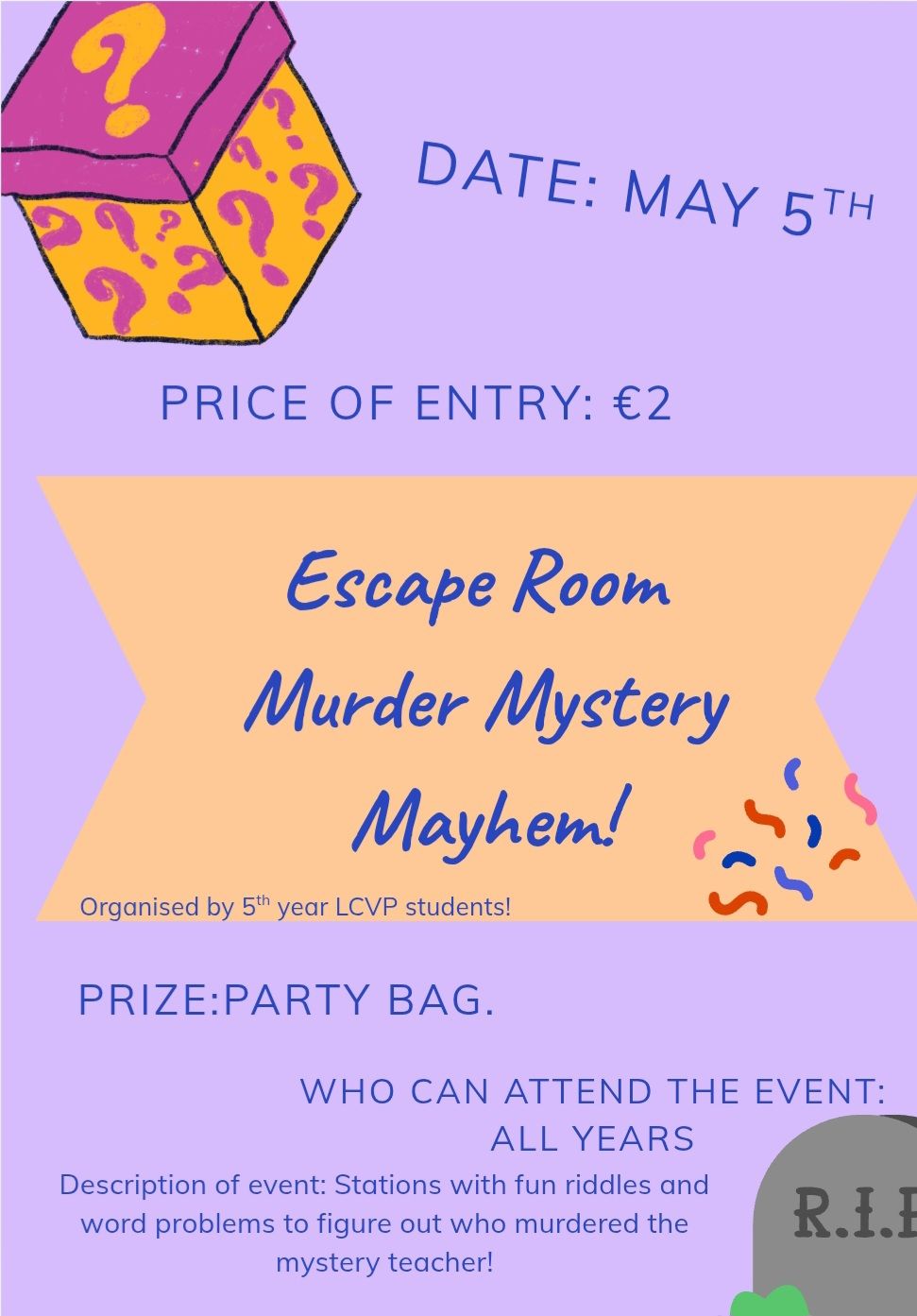 5th yr LCVP Murder Mystery Mayhem Escape Room Activities
