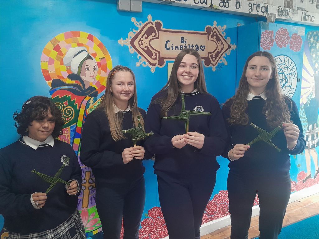 Today, our school also came together to celebrate the legacy of St. Brigid, one of Ireland’s most remarkable women. Our 1st year students kindly brought in rushes to share, and the school was filled with excitement as St. Brigid’s crosses were made. In a lovely moment of collaboration, our 5th year international students learned how to make the crosses with guidance from our Irish students. This shared experience was not only fun and engaging but also a meaningful way to learn about St. Brigid’s life, values and lasting influence. Check out our Instagram stories for some more pictures from today.