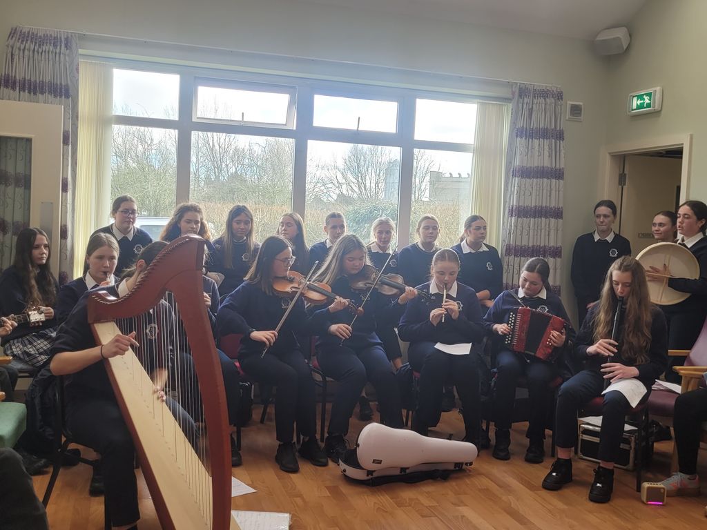 As part of our celebrations for Seachtain na Gaeilge, a group of our talented music and dancing students visited the local Day Care Centre today. The girls put on a wonderful performance that was enjoyed by all the elderly clients present.There was a fantastic atmosphere from the moment the music began. Our musicians played beautifully while the dancers performed with great energy and skill.