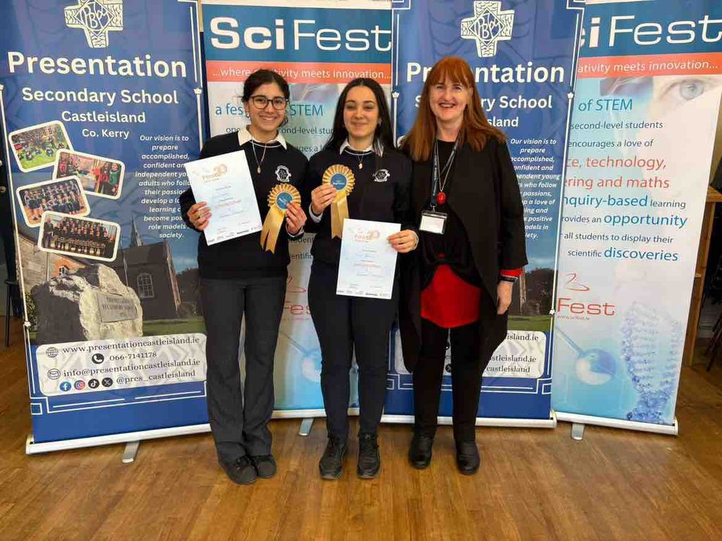 The Keenova STEM Excellence Award was presented to Saoirse Collins, Éabhha Harkin, and Laura Klein for The Effects of Blue Light.
