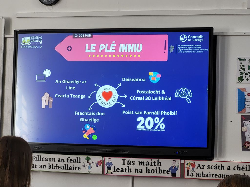 Today we welcomed Meadhbh de Bairóid from Conradh na Gaeilge to speak to students about Gaeilge and the opportunities that are out there for using Gaeilge outside of the classroom and to further their future careers. Leanfaidh SnaG ar aghaidh amárach!
