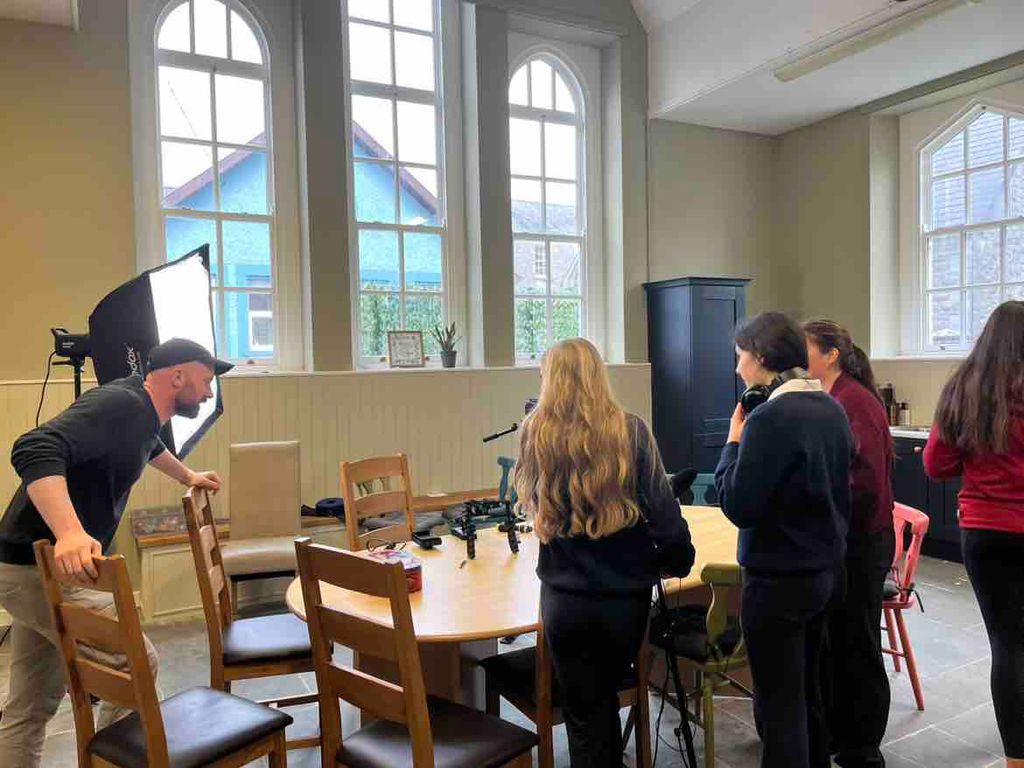 In preparation for the visit, the group worked collaboratively to write an exciting original script, which was then brought to life during a full day of filming. Students experienced every stage of the filmmaking process – from acting and directing to setting up scenes and creating a suitable film set. It was a fantastic opportunity for students to see how much planning, creativity and teamwork goes into producing even a short piece of film. We were also delighted to welcome four Transition Year students from St. Patrick’s, who joined the production as extras.